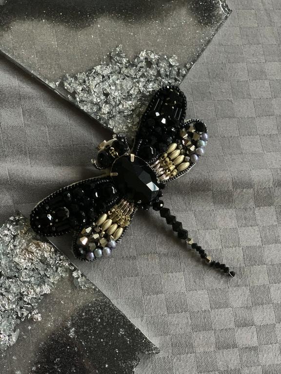 i am one of the many hand embroidered brooches inspired by a bug’s life. i am larger than your average brooch — i measure 4x4 inches. i am intricate in detail and made out of high quality crystal stones, bugle beads and one big rock stone. my back has an artificial leather finish. i have a pin that will secure me onto many canvases.