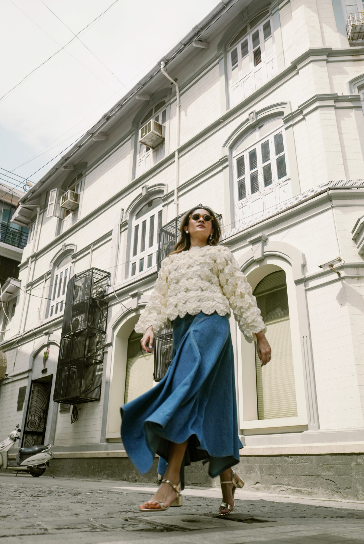But let’s talk about the skirt. You might remember a version of me from margin’s Her Hues collection – the No Boundaries Skirt. But this time, I am a full-length denim maxi — sharp, sculpted, and slightly unexpected. Made from lightweight denim that moves easier than it looks, I blend ease and edge with just the right dose of detail. Volume meets everyday. Utility, but elevated.