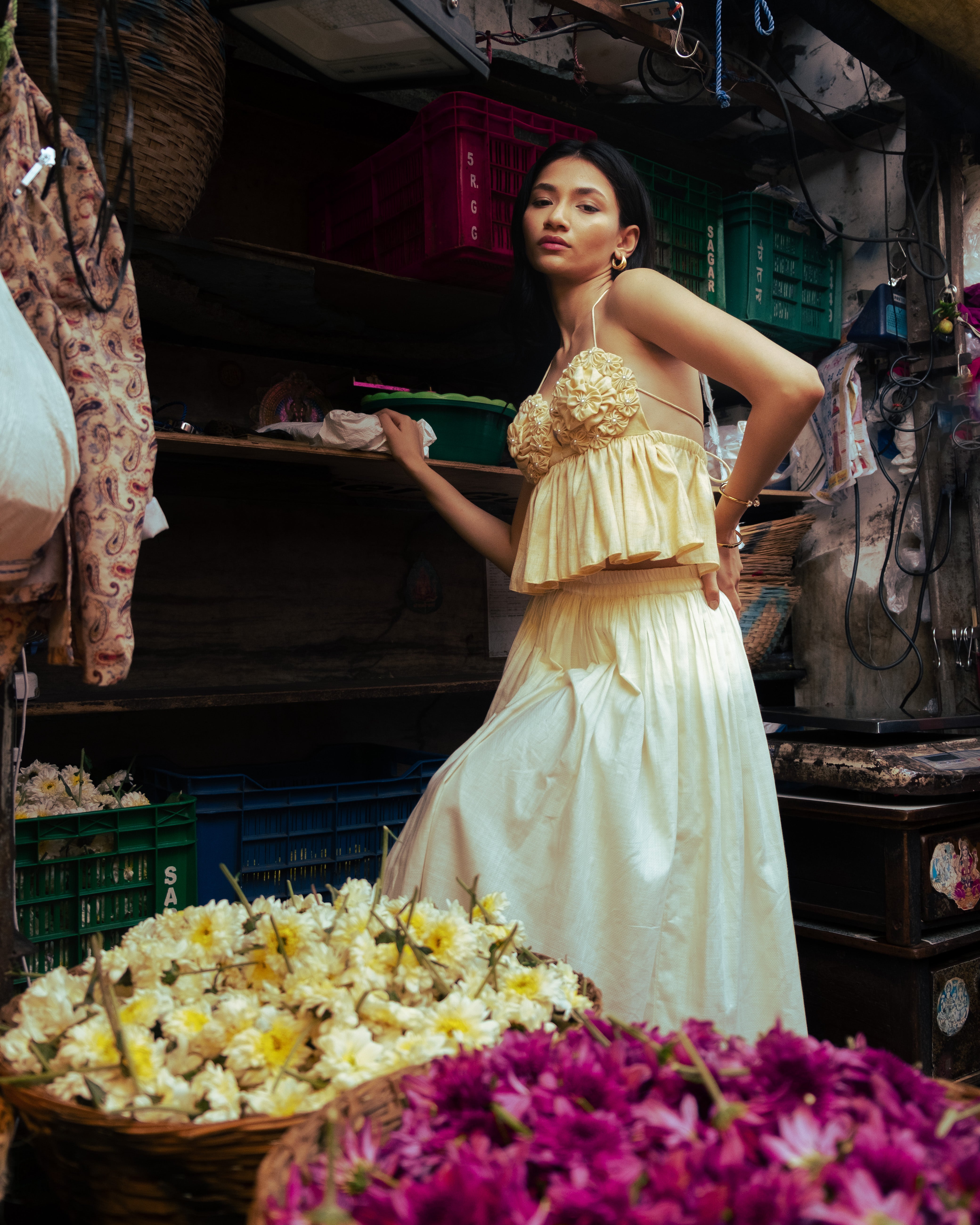 Call me the Butter Cup Bloom Top — the sartorial equivalent of golden hour. I’m a peplum burst of sunshine, crafted in breathable linen and kissed with hand-cut floral appliqués made from leftover scraps. Every bloom you see? A second chance stitched into something unforgettable. I don’t just flirt with texture, I indulge in it—folds, florals, and that strappy back that was made for the camera roll. I’m your best plus-one to birthday brunches, sundowner soirées, or a slow solo morning that turns into an impromptu adventure.