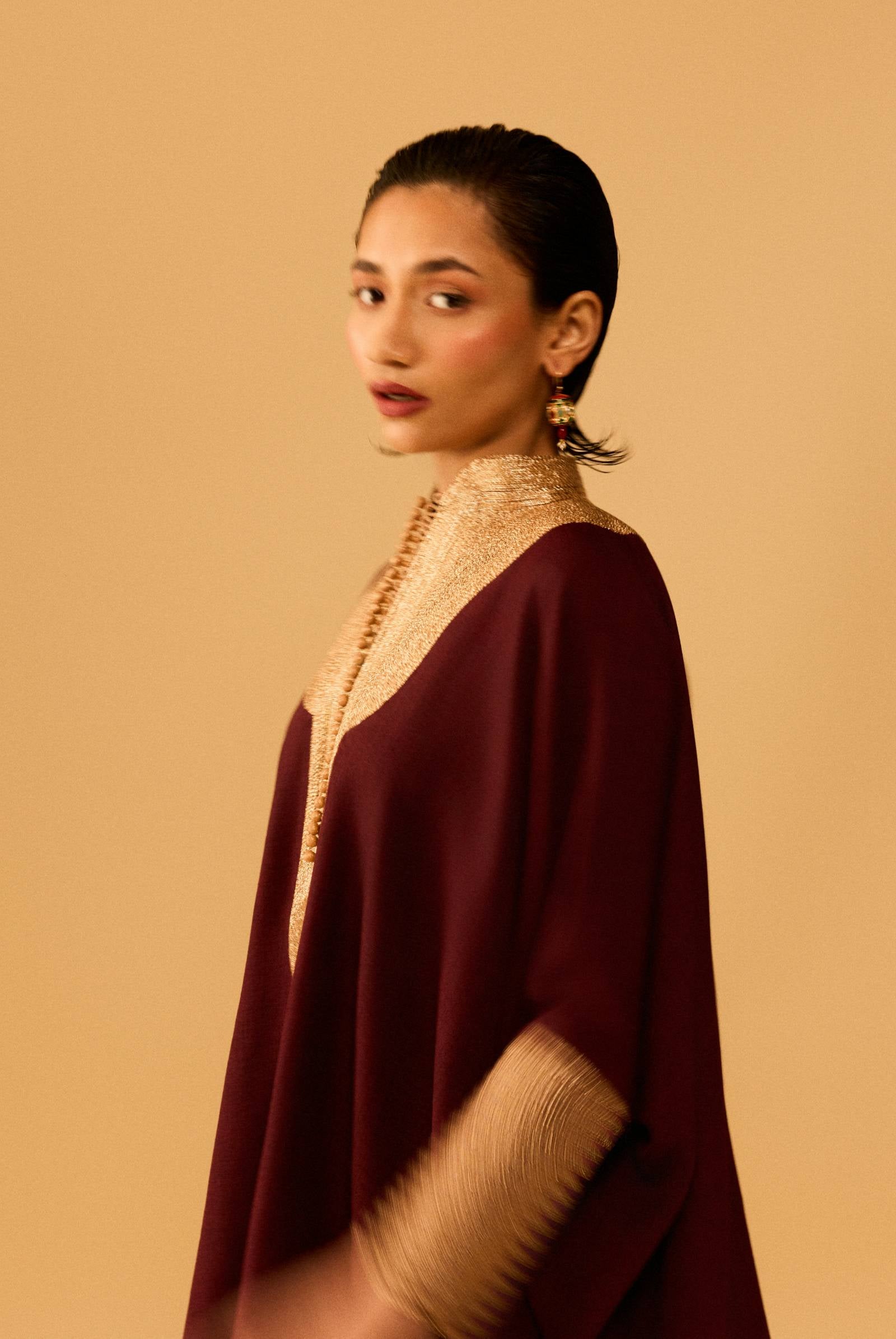When tradition meets a touch of drama. I’m the Let It Go-ld Kaftan Kurta—a red-and-gold festive piece where a structured kaftan top flows into a draped skirt. My statement bold gold neckline and fluid silhouette strike the balance between heritage and modern ease. I’m bold in contrast yet soft in movement—made to feel effortless even when the occasion calls for a little grandeur. I am also available in a deep burgundy, with a rose gold neckline, you decide your favourite mood, but either way, let it GO-LD!