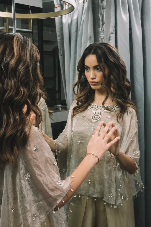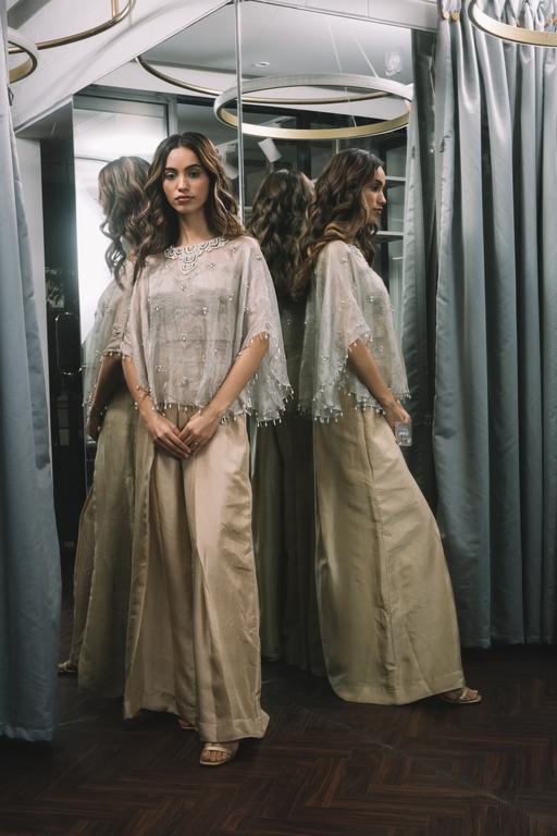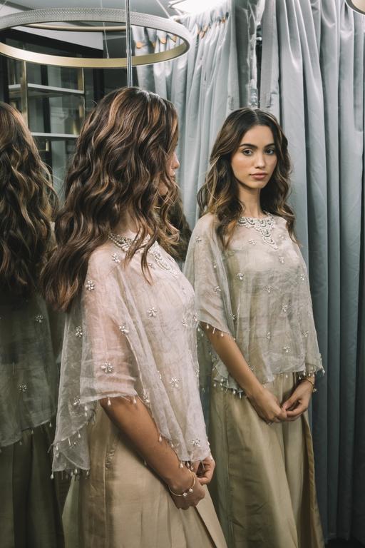 i am an elegant style staple for every mood. my subtle embroidery makes a big statement. wear me out at night, i shine the brightest then. i look great on a saree just as much as i do over a dress. capes are wonderful that way. i love the way i look with the magical coords though. so if you are looking for a complete outfit, get us together.make sure my story is never ending