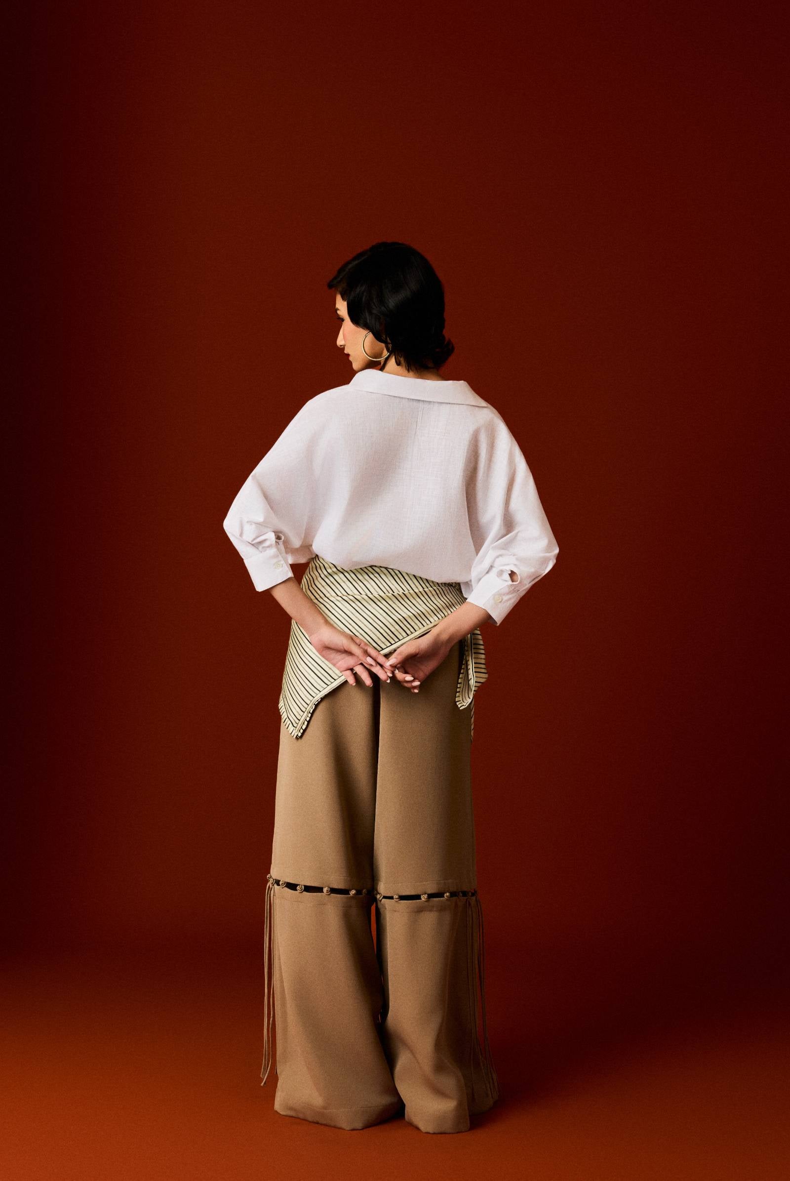 Every story starts with a point of view—here’s mine. I’m the Unexpected Mindset Shirt—a stylised white linen shirt with a small collar, a mock pocket, and an oversized fit that makes casual feel intentional. Look closer and you’ll find “her point of view” embroidered on me, a quiet nod to seeing things your own way. Easy to style, airy to wear, and never just another white shirt.