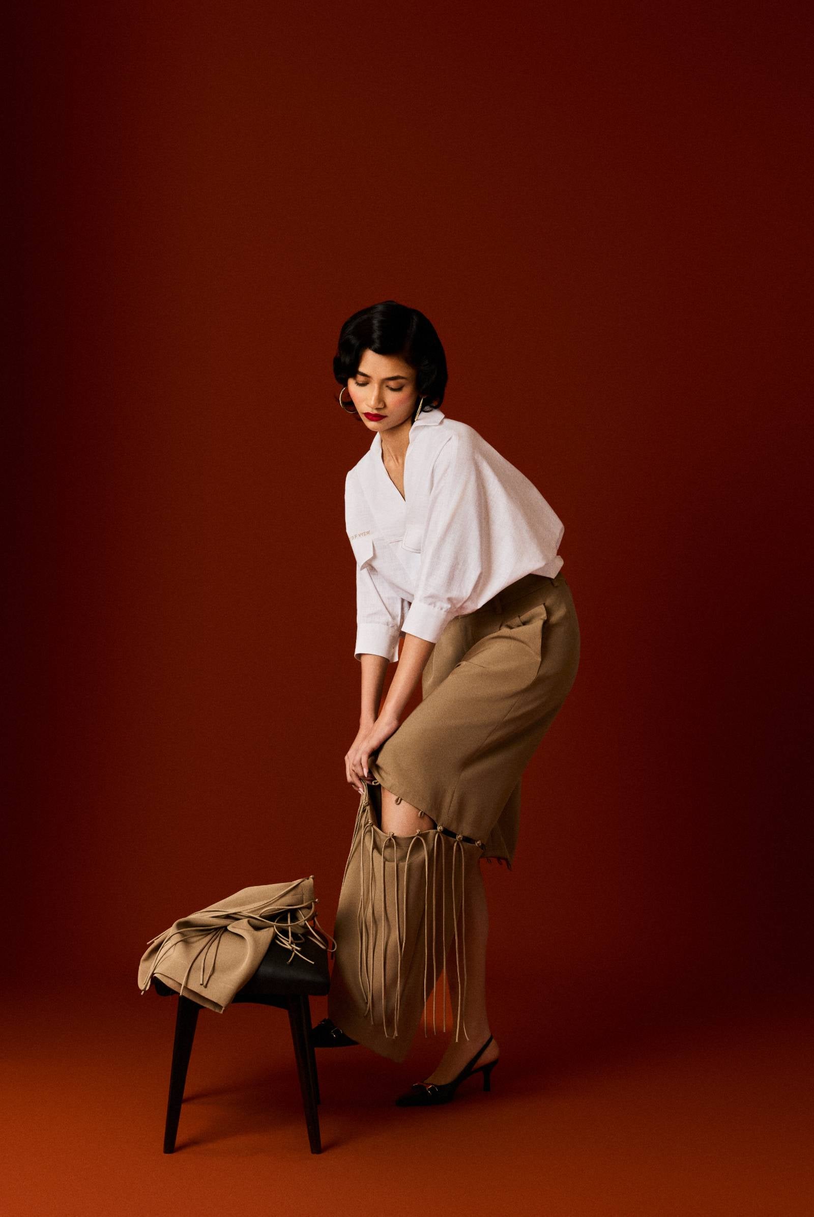 I’m as versatile as your plans—perfect for a travel day, a stroll through an art gallery, or even a music festival where comfort meets style. Pair me with hoops and sneakers for an off-duty look, or swap in heels and a crossbody bag for a sharper edge. My fringe detailing and deconstructed silhouette keep me modern, while my transformable pants let you play it casual or tailored without missing a beat.make sure my story is never ending