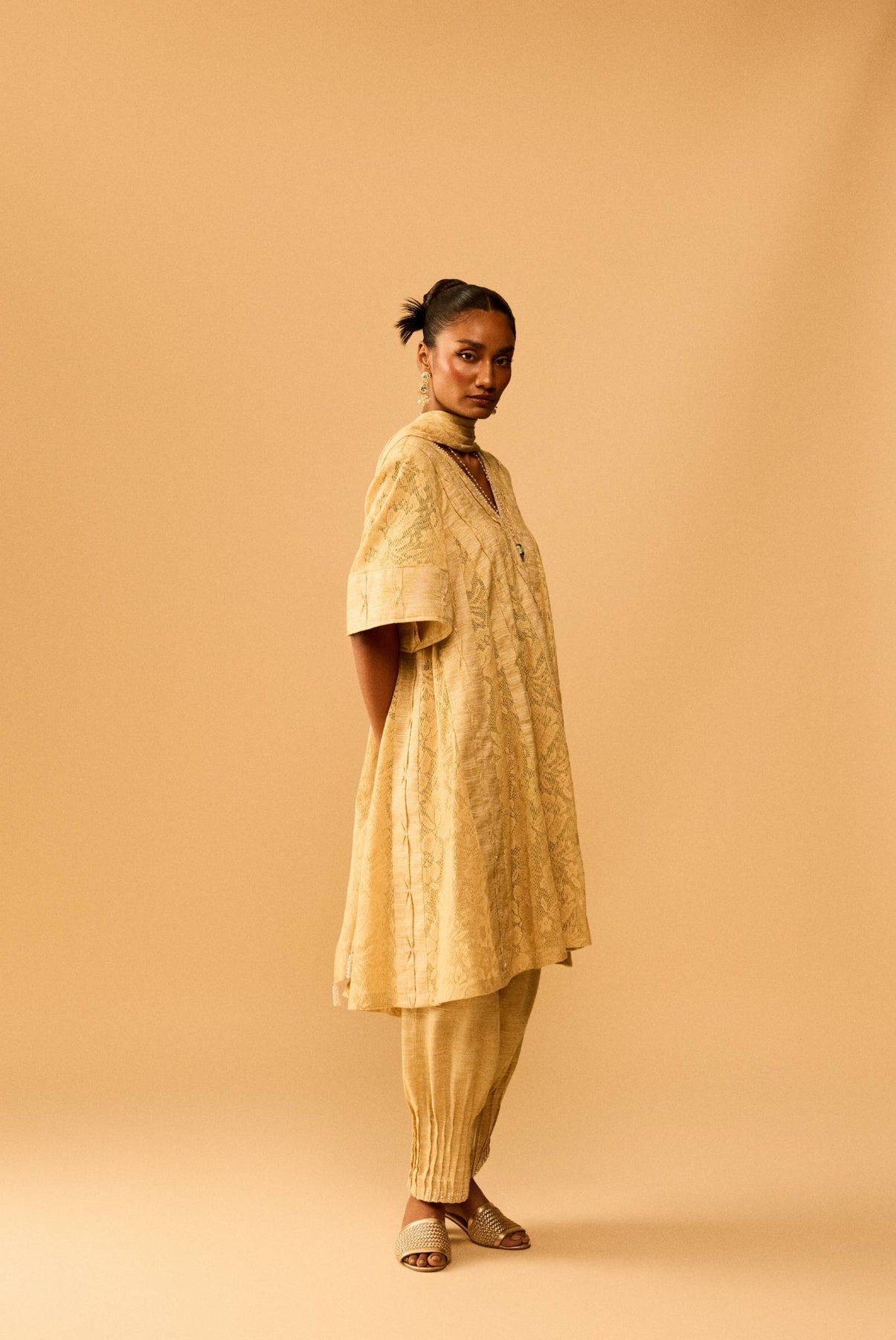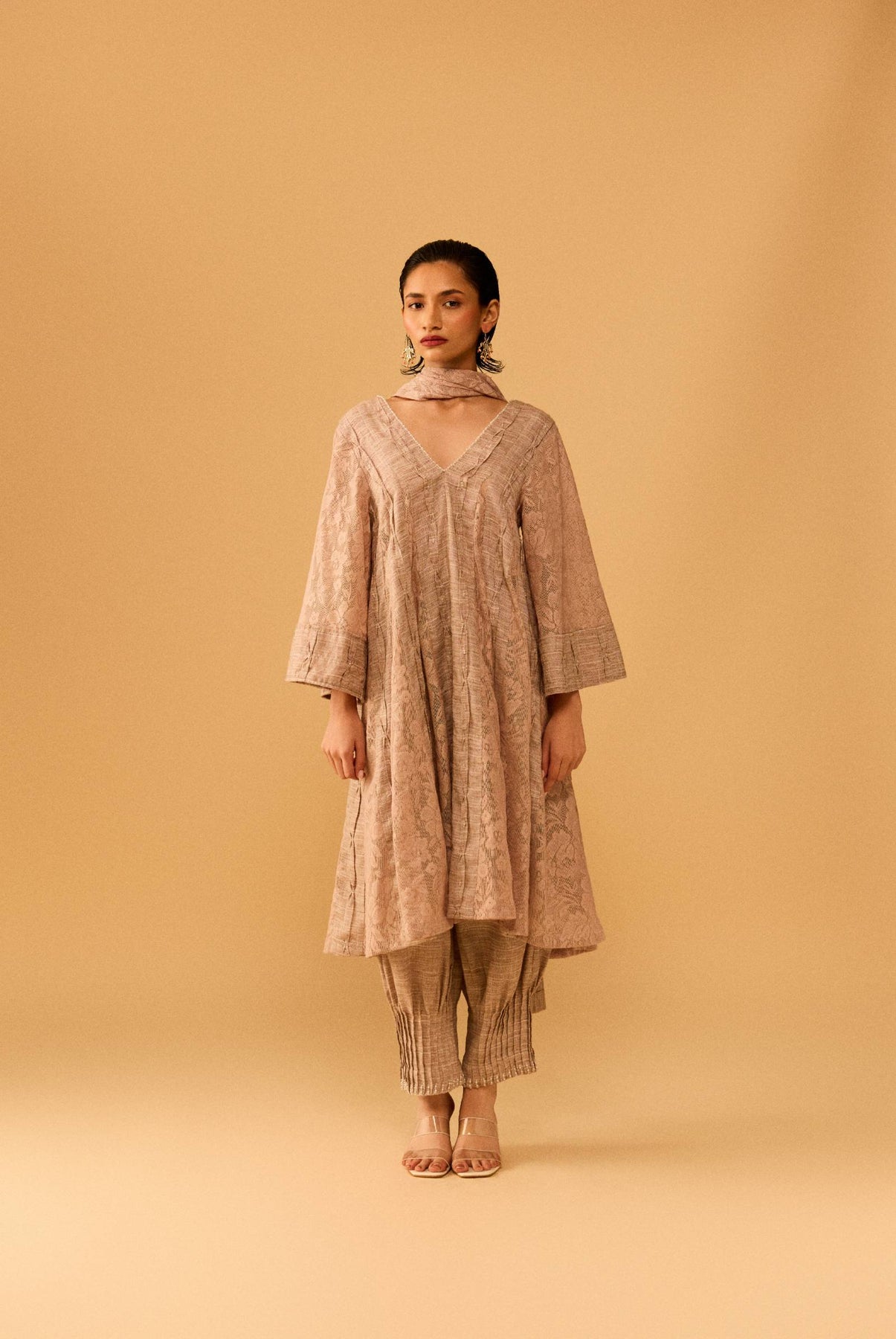 Sometimes the softest tones leave the deepest impression. I’m the Unmuted Anarkali—crafted in lightweight brown linen with a textured finish that lets me breathe as easily as I move. I also have a butter yellow option, that feels like summer all year round. My silhouette is fluid, my design simple yet thoughtful, and my earthy tone keeps me rooted in minimalism without ever feeling plain. I’m made for days when you want your style to speak softly but still be noticed.